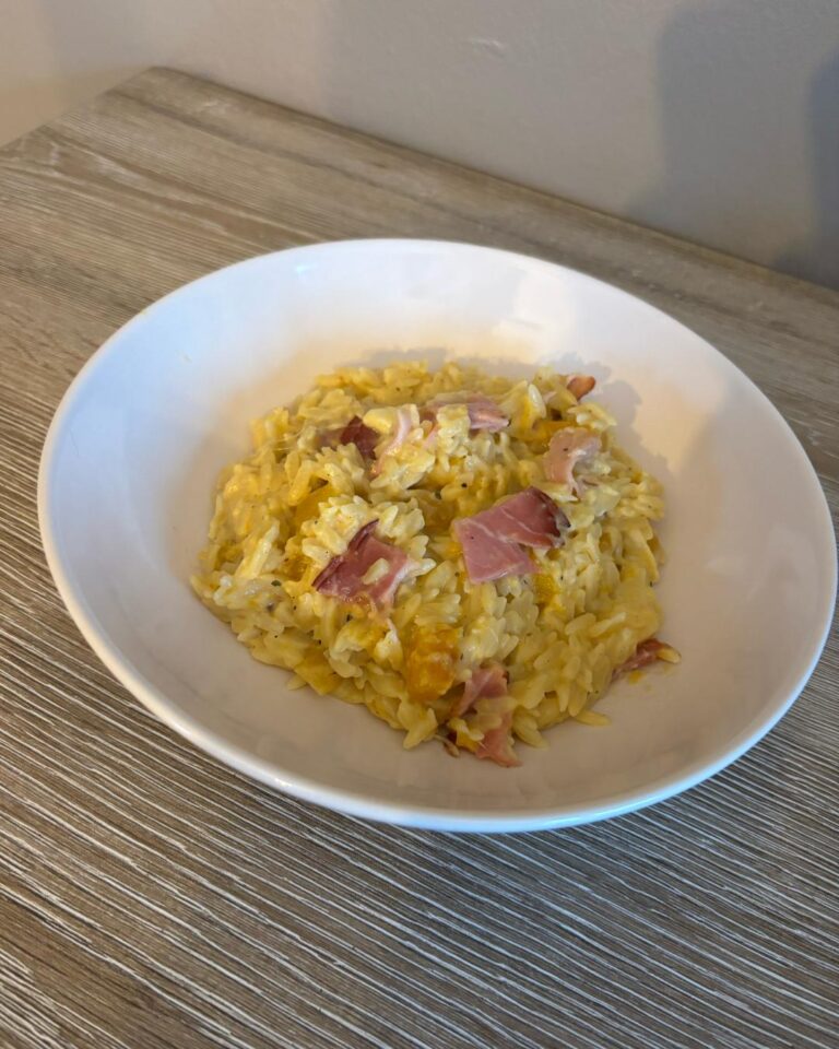 Orzo crèmeux au butternut, butternut fumé et jambon fumé